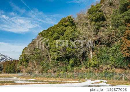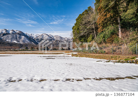 残雪の奥琵琶湖の田園風景 滋賀県長浜市永原