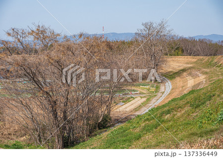 京奈和自転車道と川沿いの田園風景 京都府京田辺市