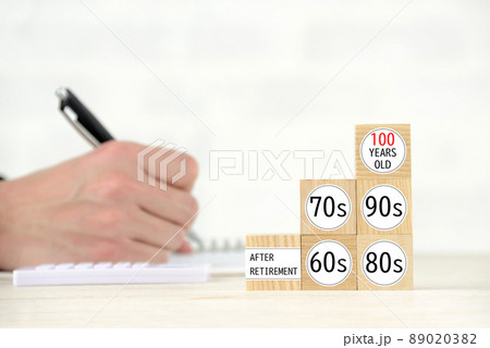 一生のイメージ|「LIFETIME」と書かれた積み木とノートとペン