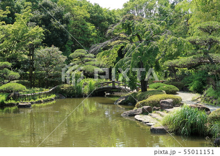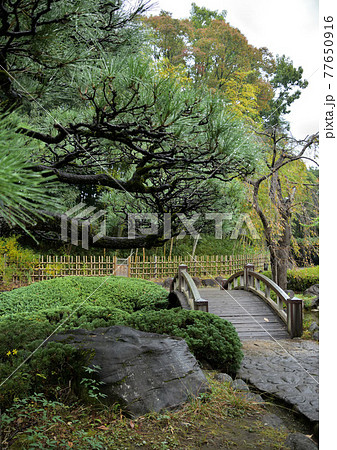 神奈川県 平塚市総合公園の日本庭園散策路と木橋