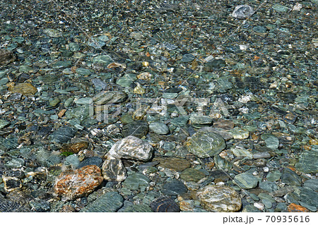背景素材 透きとおる(透明度)祖谷渓谷の水面で川底の石が見える