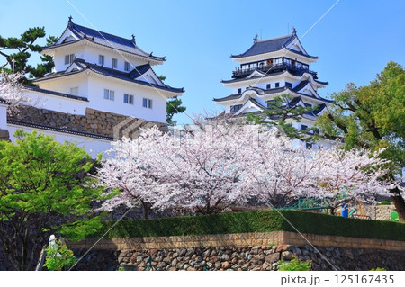 【広島県】快晴の福山城と満開の桜(天守閣 月見櫓)
