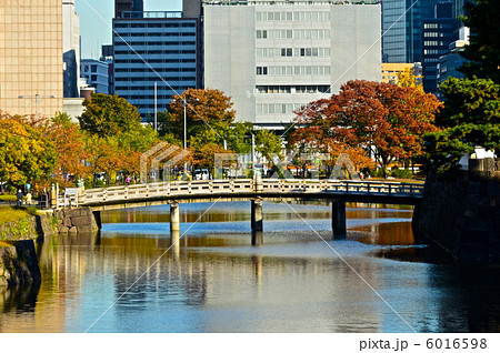 時代を超えた都市風景 江戸城跡・内堀に架かる平川橋とビル街