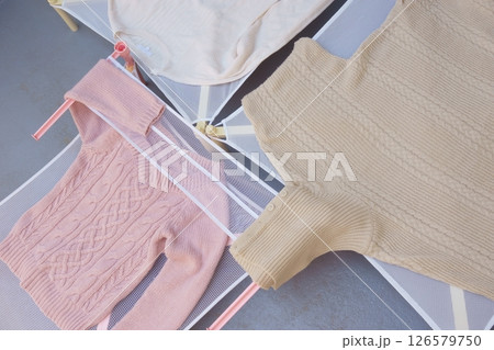 平干しネットで陰干ししたセーター