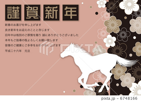 午&梅の花 イラスト_年賀状_02 平成二十六年 縦