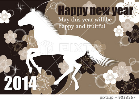 午&梅の花 イラスト_年賀状_02 2014年 横
