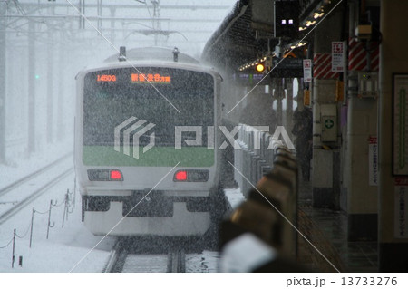 吹雪くほどの大雪となったJR山手線目白駅(平成26年豪雪)
