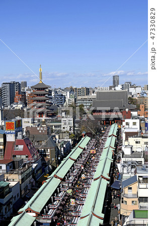 日本の東京都市景観 浅草寺などを望む(歩行者天国)。平成最後のお正月=平成31年1月2日撮影