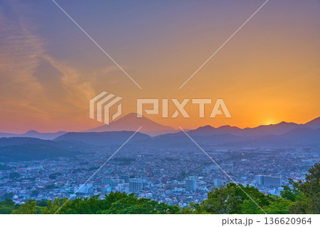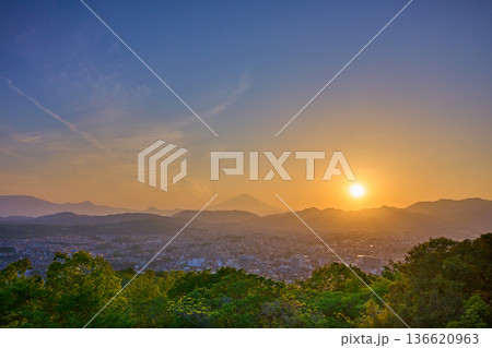 神奈川県秦野市の権現山からの夕景(秦野市街,富士山など)