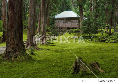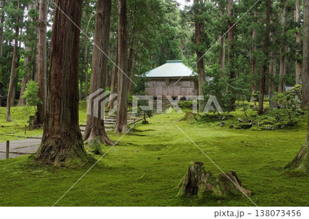 白山平泉寺 拝殿と苔エリア