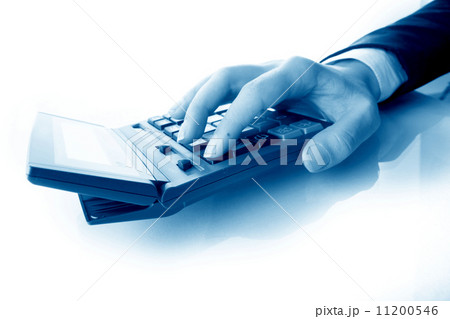 Hands working on the calculator
