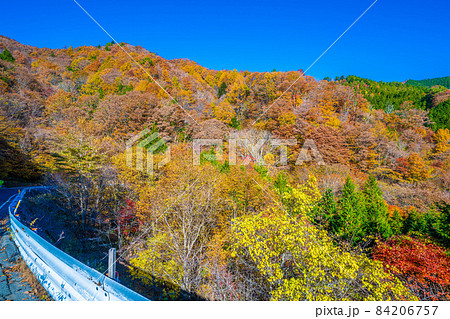 《長野県》下伊那郡平谷村 秋の国道153号治部坂峠 紅葉の山々