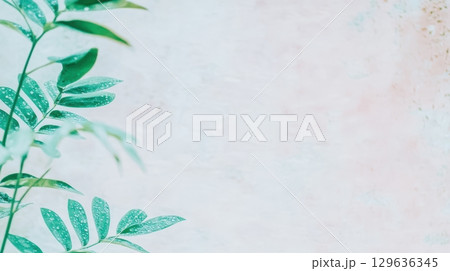 Lush green leaves against a soft pastel background create a serene and calming atmosphere