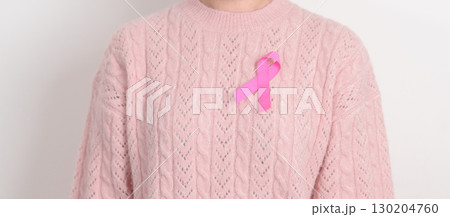 Pink October Breast Cancer Awareness month, woman with pink Ribbon for concepts of support people life and illness. National cancer survivors month, Women Health day and February World cancer day