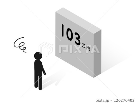 103万円の年収の壁に困る人のアイソメトリックイラスト