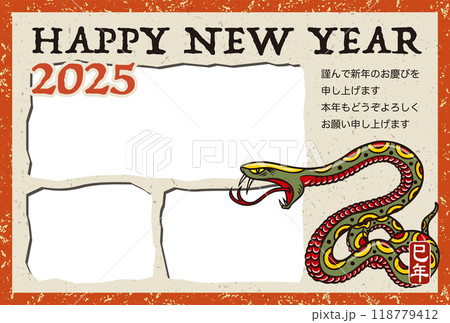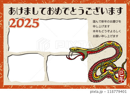 2025年 巳年 年賀状素材 2025のへびさん素材 フォトフレーム