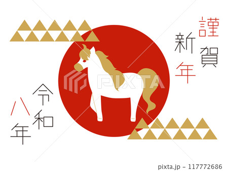 2026年の午年の馬をモチーフにしたイラストの年賀状はがき素材 和風