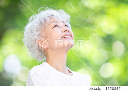 シニア女性 ポートレート 緑