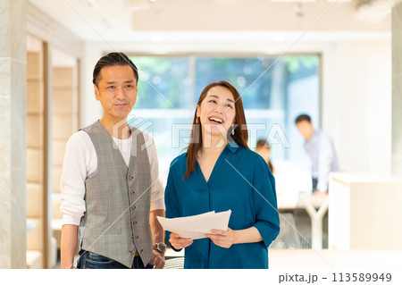 オフィスで働くミドルのビジネスパーソンの男女