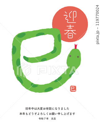 2025年巳年 年賀状 絵文字のヘビと梅の花 縦