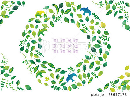 水彩風 新緑リースタイトル(葉っぱ、鳥)