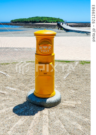 青島を背景に幸せの黄色いポスト(宮崎県宮崎市)