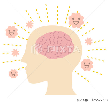 幸せホルモンのオキシトシンやセロトニンがが脳から分泌されるイメージイラスト