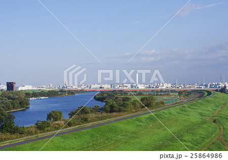 「埼玉県」荒川上空から川上方向を望む 戸田市