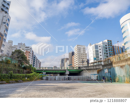 かつて築地川干拓後に都市計画が変更され、川底に誕生した空間【築地川公園 多目的広場】