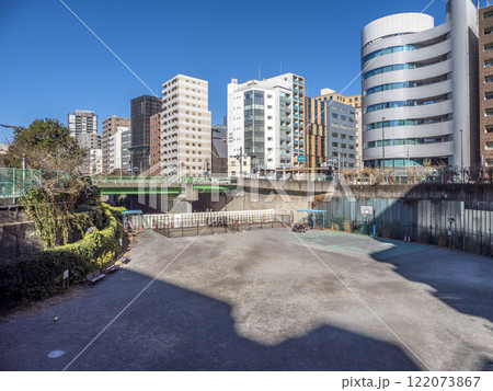 かつての築地川を埋め立てた後に道路計画が凍結し、建設中のまま残されたトンネル(東京都中央区)