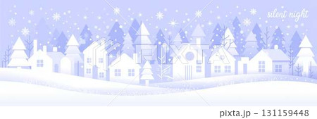 森と家並みが雪に包まれるサイレントナイトのイラスト