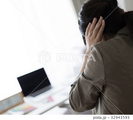 精神的に弱っている広報担当女性のセット