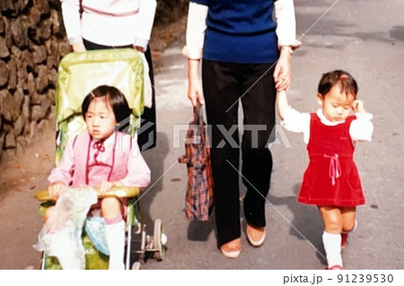 昭和50年代 手を繋いでポーズをとる仲良し姉妹