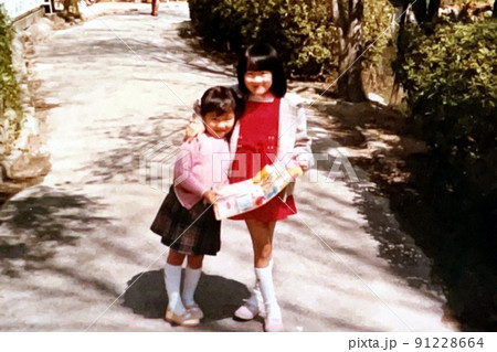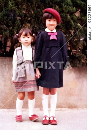 昭和50年代 おめかしをして記念撮影する仲良し姉妹