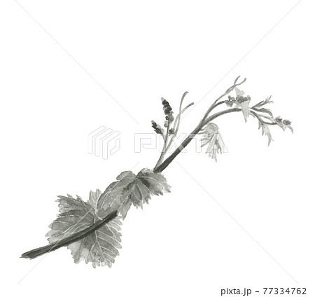 水墨画風水彩:ブドウの幼穂 シャインマスカット モノトーン 白バック