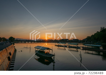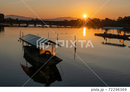 京都市右京区嵐山の渡月橋を早朝に撮影したもの