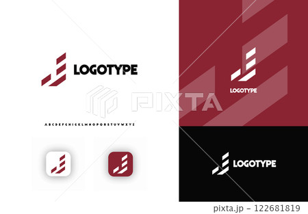 Bold diagonal stripes creating geometric shapes letter J logo for technology, finance, banking, cryptocurrency, corporate branding, architecture, construction, real estate. Vector illustration