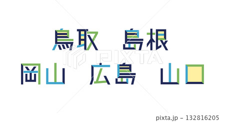 中国地方の都道府県のテキストベクター素材 | バラバラの文字, 色変更可能, パス分解