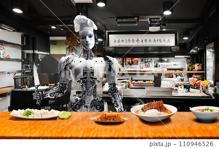 ロボットの中華シェフ ロボットの料理人 ロボットのコック ロボット 包丁 飲食 中華 働くロボット