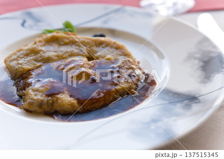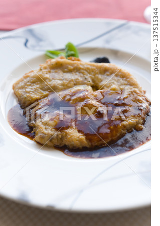 酒田市のフレンチレストランで提供されたメインディッシュのポークピカタ