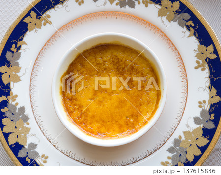 酒田市のフレンチレストランで提供されたデーザートのクレームブリュレ(焼きプリン)