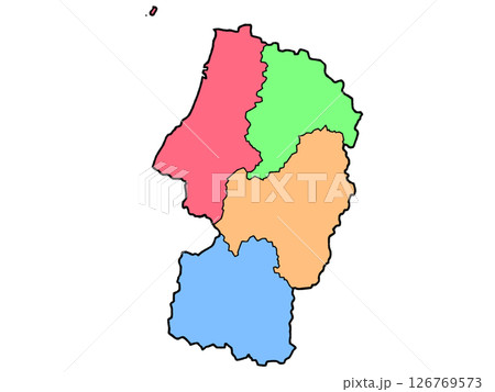 少しゆるい山形県地図 地域色分け 東北