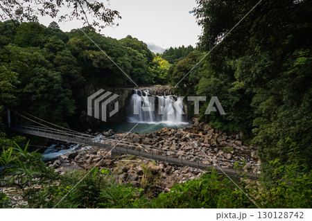 夏の関之尾滝と吊り橋 宮崎県都城市関之尾町