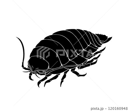 ダイオウグソクムシの白黒イラスト(白抜きあり)