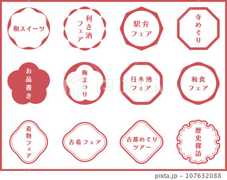 スタンプ風の和風レトロフレームセット ベクターイラスト