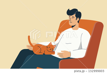 Close-up image of a cute cat lying on his owner's lap, being petted by his owner.