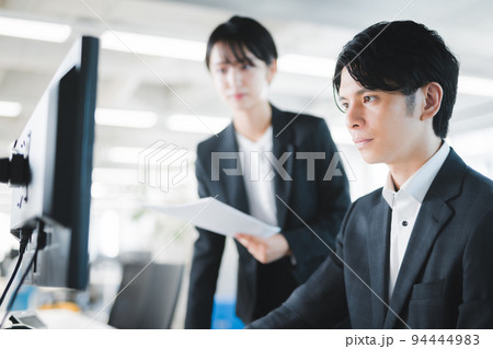 会社で資料を確認する社員の男性