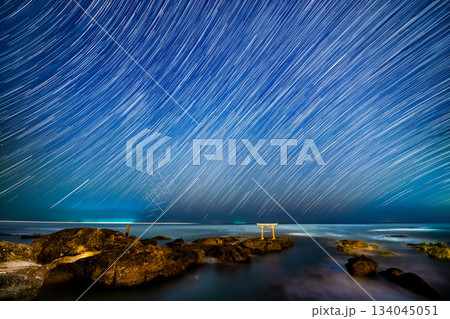 茨城 大洗磯前神社・神磯の鳥居の星景