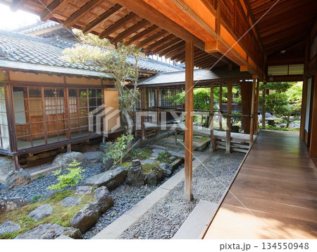 縁側から望む、静寂に包まれた和の庭園