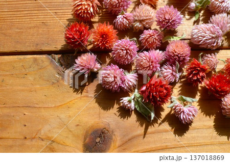 庭の千日紅でドライフラワーのハートを作る